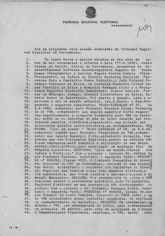 Ata da trigésima nona sessão ordinária do Tribunal Regional Eleitoral de Pernambuco.