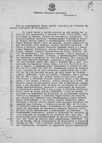 Ata da quadragésima sexta sessão ordinária do Tribunal Regional Eleitoral de Pernambuco de 1983.