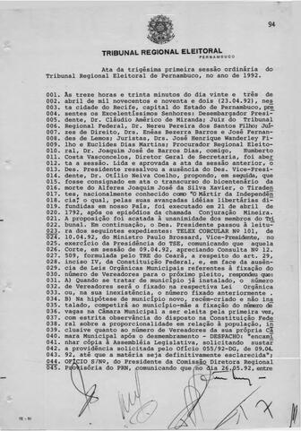 Ata da trigésima primeira sessão ordinária do Tribunal Regional Eleitoral de Pernambuco, no ano de 1992.