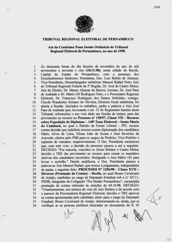 Ata da Centésima Nona Sessão Ordinária do Tribunal Regional Eleitoral de Pernambuco, no ano de 1998.