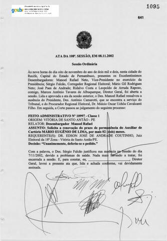 Ata da centésima oitava sessão ordinária do Tribunal Regional Eleitoral de Pernambuco de 2002.