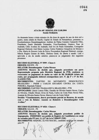 Ata da sexagésima sessão ordinária do Tribunal Regional Eleitoral de Pernambuco de 2004.