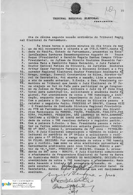 Ata da quarta sessão ordinária do Tribunal Regional Eleitoral de Pernambuco de 1981.