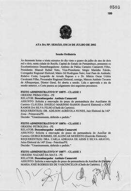 Ata da quinquagésima sessão ordinária do Tribunal Regional Eleitoral de Pernambuco de 2002.