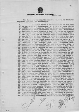 Ata da trigésima sessão ordinária do Tribunal Regional Eleitoral de Pernambuco de 1989.