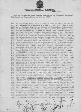 Ata da Trigésima Nona Sessão Ordinária do Tribunal Regional Eleitoral de Pernambuco, no ano de 1995.