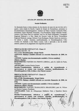 Ata da vigésima nona sessão ordinária do Tribunal Regional Eleitoral de Pernambuco de 2004.