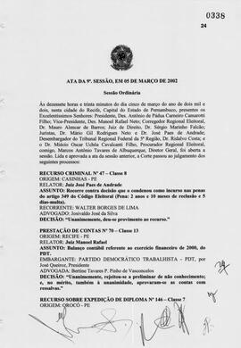 Ata da nona sessão ordinária do Tribunal Regional Eleitoral de Pernambuco de 2002.