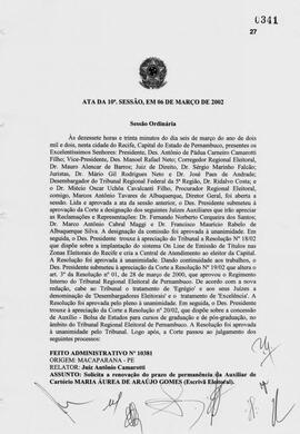 Ata da décima sessão ordinária do Tribunal Regional Eleitoral de Pernambuco de 2002.